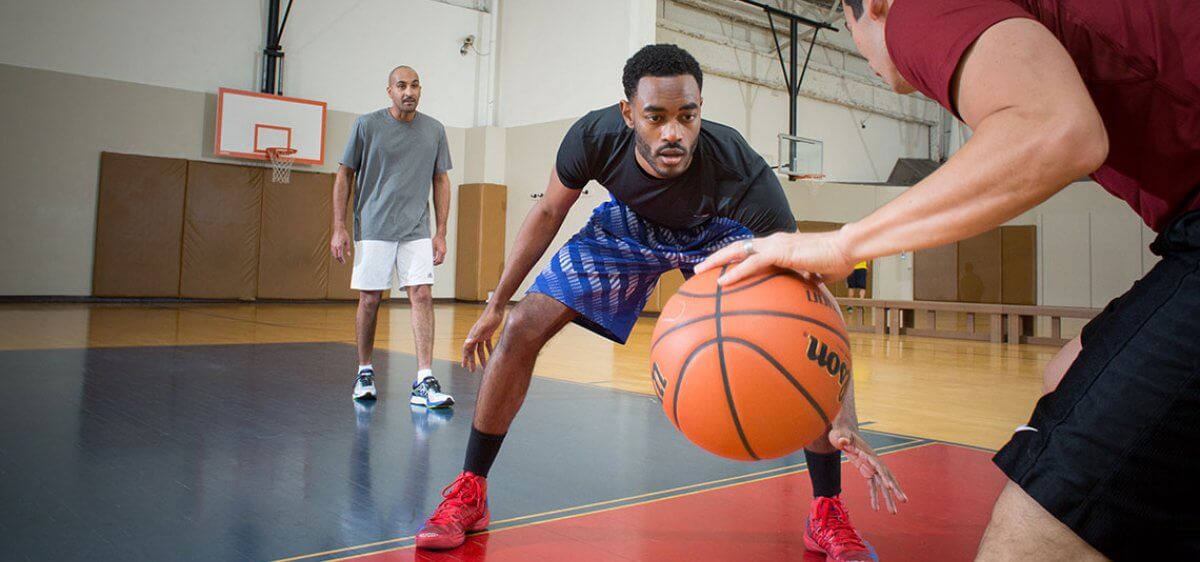 Two full gymnasiums and spirited competition make East Bank Club one of the city's most popular places to play basketball.