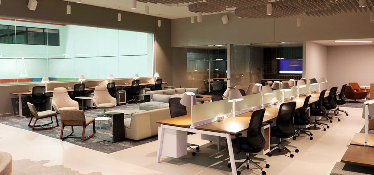 • High-end commercial-grade furniture and fixtures from top manufacturers including Teknion, Coalesse and Studio TK