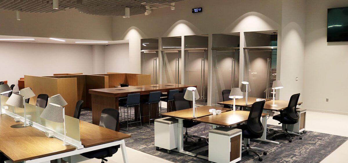 • Private meeting rooms must be reserved in advance online. Scroll down to make a reservation.